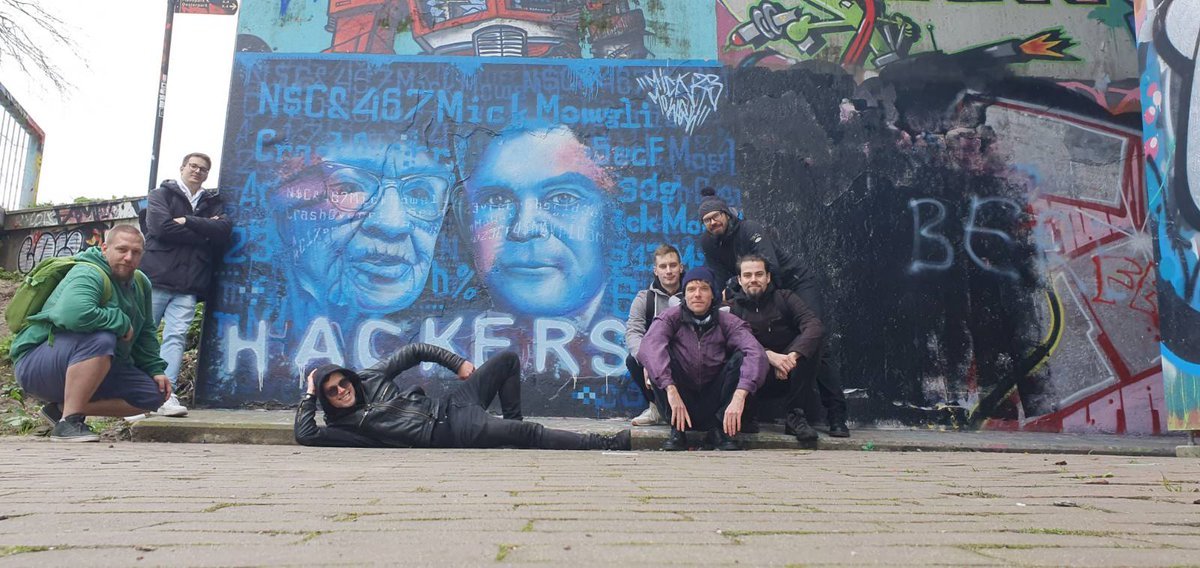 We used the mural to run a physical capture the flag at the Hack in the Box Conference in Amsterdam where we gave out the location and then a clue to where the mural was painted. The prize? A signed, framed copy in all its glory to the first person or team that took a selfie of themselves in-front of the mural. And the best bit ? A team had used OSINT before the conference to track people tagging Mick on Instagram while he was working. What a fitting set of winners. They created their own rules and used what information they could get their hands on to find what they wanted to find. Perfect, just perfect. And to top it all they graciously told me they had found it just before we started and agreed to keep it quiet so as not to spoil the fun for others. We knew using a legal wall was a risk but wanted to respect the conference organisers.